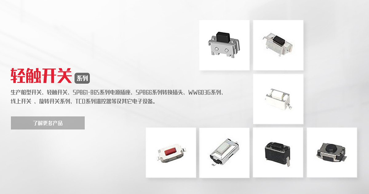 致力于船型開關(guān)、負(fù)載開關(guān)、輕觸開關(guān)、微動開關(guān)等產(chǎn)品的研發(fā)、制造、銷售。